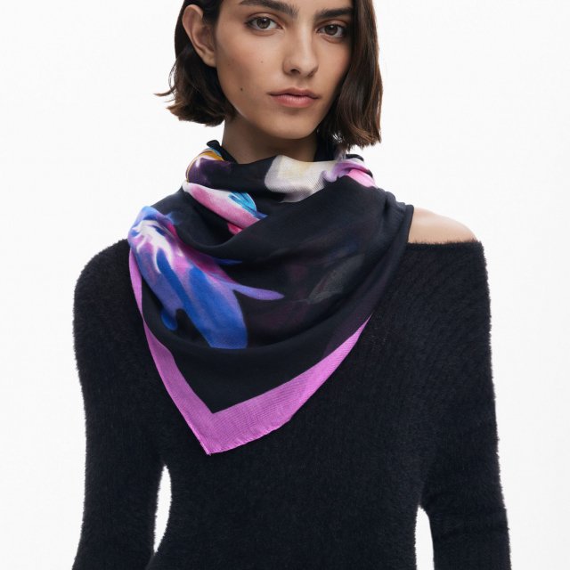 The Desigual floral scarf is your go-to companion when temperatures drop. It’s best used throughout the fall and winter seasons, whether you’re strolling through the city, heading to the office, or enjoying a cozy evening out. Its elegant design makes it suitable for both everyday wear and special occasions.