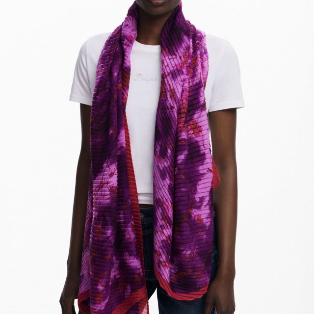 This Desigual scarf isn’t just another accessory – it’s a statement piece. Whether you’re heading to the office, enjoying a casual weekend stroll, or dressing up for an evening out, it adds a pop of color and sophistication to your look. Its floral print offers a feminine touch, while the deep purple makes it versatile enough to pair with coats, jackets, or sweaters.