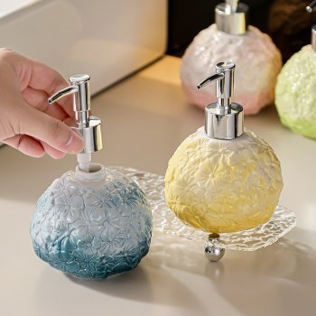 Embossed Floral Ceramic Soap Dispenser – Elegant Spherical Lotion Bottle