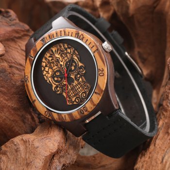 Punk Vintage Ebony Wood Watch – Unique Quartz Wristwatch for Men