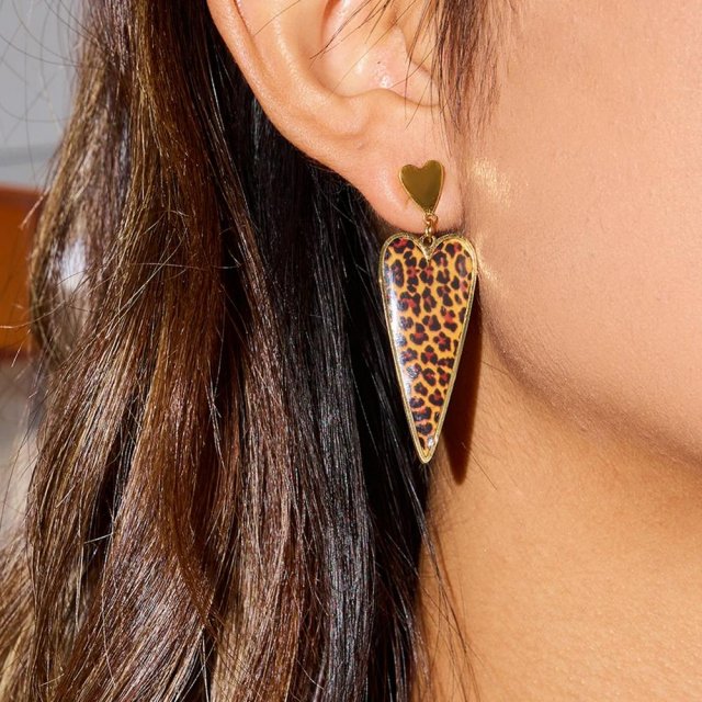 Turn heads and elevate your style with these stunning leopard print heart earrings. Crafted from high-quality stainless steel and plated in a rich 18K gold color, they combine timeless elegance with playful charm. The classic heart silhouette, paired with the bold leopard print design, makes these earrings the perfect statement accessory for anyone who loves standing out with confidence.